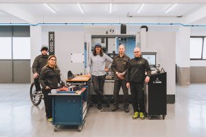Parmi ces nouvelles technologies se trouve la fabrication additive mais pas seulement, puisque l’essentiel de la production repose sur l’usinage et le soudage de pièces en carbone. Ainsi, les dix personnes travaillant en production et qui accompagnent la vingtaine d’ingénieurs ont des besoins de production très variés, nécessitant une grande flexibilité. L’atelier doit en effet être en mesure de s’adapter rapidement aux changements de séries et aux opérations très différentes les unes des autres, tout comme la fabrication de masse de petites pièces puis des éléments de grande taille ou de moules pour les pièces en carbone. De plus, se pose le problème d’espace et de résistance au sol – le bâtiment est en hauteur, rappelons-le. Impossible donc d’installer certaines machines à l’étage.