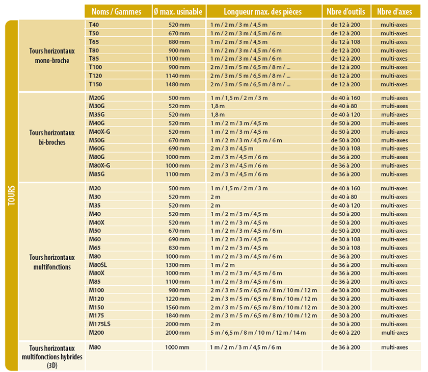 WFL construit également des Tours à bancs inclinés très rigides. Nous parlons alors ici de la gamme T : du T40 jusqu’au T150. Enfin, une machine-outil WFL existe en version mono-broche et en version bi-broche.