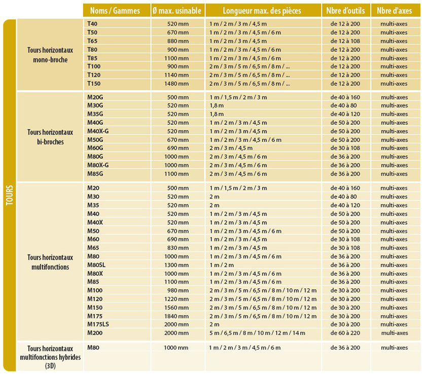 Riche de plus de 30 ans d’expérience en matière d’usinage intégral et ayant résolu des milliers de tâches, l’entreprise WFL garantit à ses clients le Tour-Fraiseur le plus efficace et le plus fiable du marché. WFL construit également des Tours à bancs inclinés très rigides. Nous parlons alors ici de la gamme T : du T40 jusqu’au T150. Enfin, une machine-outil WFL existe en version mono-broche et en version bi-broche.